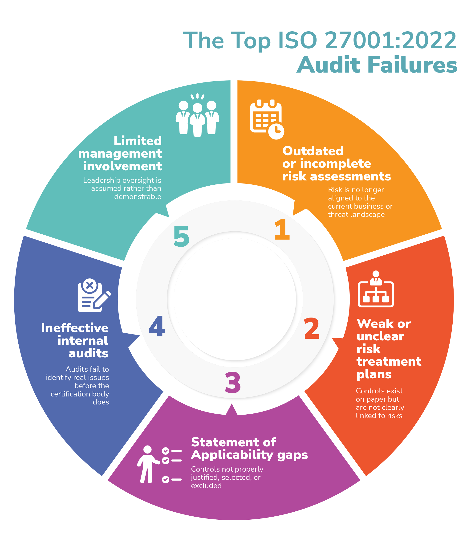 In this blog, we highlight the most common issues identified during audits of organisations that have transitioned to ISO 27001:2022. We examine recurring gaps in internal audit coverage, inconsistencies in risk management practices, and challenges in reassessing control maturity following the updated Annex A. We also consider the practical application of ISO 27002:2022 control attributes and explore common weaknesses in management review inputs, particularly the need to evidence changes in interested parties’ requirements and expectations. Finally, we outline a number of operational control requirements that are frequently overlooked in practice.